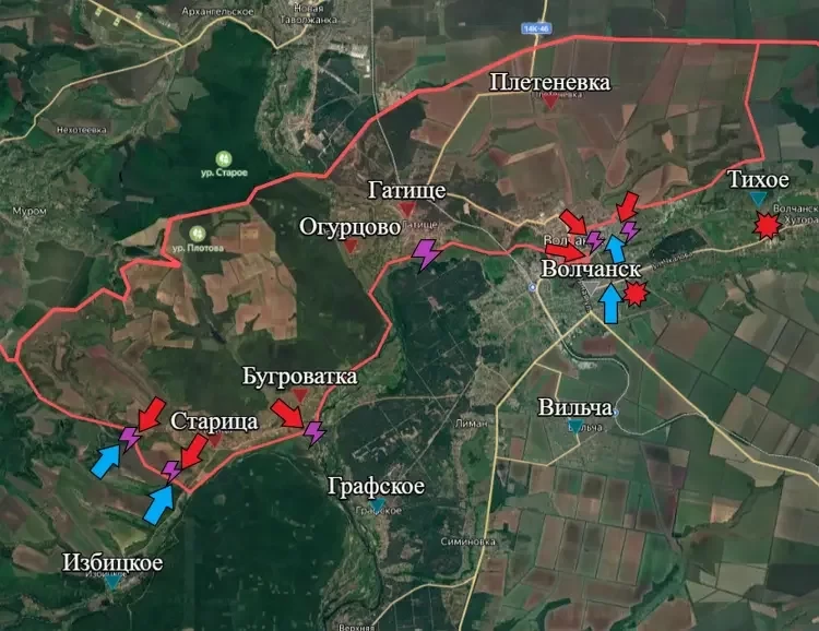Продолжаются бои в северной части Волчанска. Наши бойцы завершают зачистку Волчанского агрегатного завода от остатков ВСУ, а также оказывают давление на врага чуть восточнее. Противник серьёзно обескровлен и не имеет достаточных сил для дальнейшего продвижения. Будем надеяться, что в скором времени он откатится назад, будучи выбитым со своих позиций.