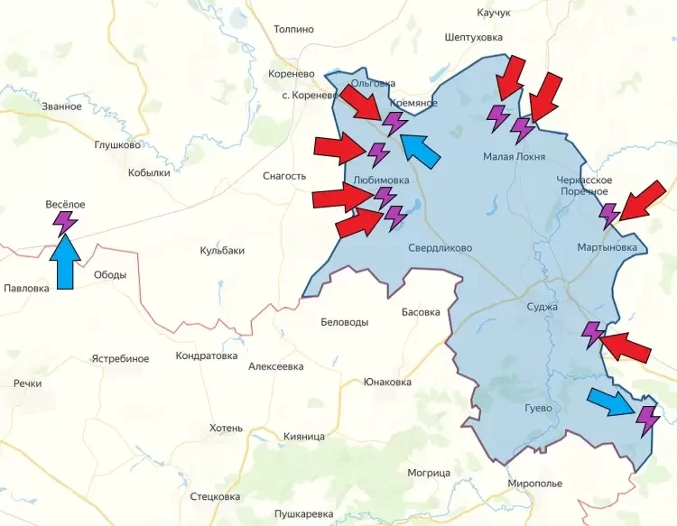 В Суджанском районе военные ВС РФ ведут бой за Мартыновку, Фанасеевку, Уланки и Погребки. ВСУ пытаются контратаковать в Глушковском районе. Ситуация там хоть и непростая, но остается под контролем российских подразделений.
