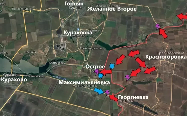 ВС РФ существенно продвинулись с северо-западных окраин Красногоровки и срезали почти весь “карман” ВСУ западнее города. Нашим бойцам удалось добраться до Острого и занять часть населённого пункта. Атакующие действия Армии России были сопряжены с потерей бронетехники и живой силы. По колонне нашей техники началась массовая атака ещё не подступах к населённому пункту, а в самом Остром ВСУ атаковали беспилотниками уже дома, которые заняли наши бойцы.