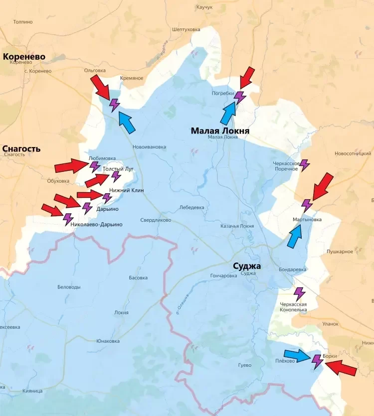 Обновлённая карта боевых действий на Украине по данным на 13:00 мск сегодня, 15.09.2024