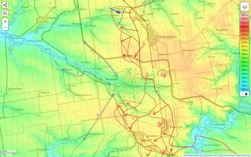 «Движение идет вдоль трассы М-30 по направлению к съезду на Селидово. Взятие под контроль этого перекрестка, до которого по состоянию на утро нам осталось пройти примерно 3,5 километра, вместе с перерезанием всех путей сообщения Селидово с юга, где нам надо пройти примерно столько же, станет приговором Селидовской группировке ВСУ», - добавил Подоляка.