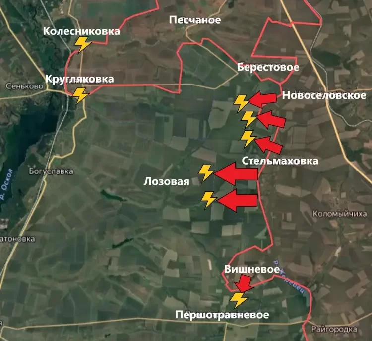 На Купянском направлении в районе Кругляковки и Колесниковки продолжаются встречные бои. За последние сутки информации о продвижении ВС РФ на этом участке не поступало.