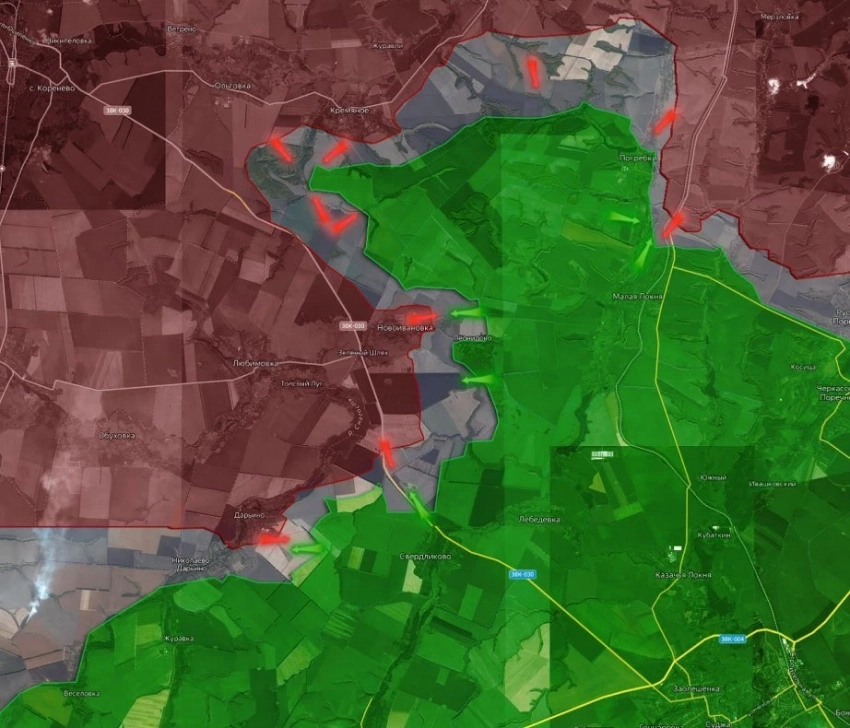 Продолжаются бои за Новоивановку и прилегающие территории - поля и лесистые участки к северу от села. Атаки наших военных активно поддерживает авиация ВКС, артиллерия и ТОС. Здесь российским войскам удалось продвинуться примерно на 700 метров. С мест боев сообщили об уничтожении двух ББМ, двух 120-мм минометов и поражении трех пунктов управления БПЛА.