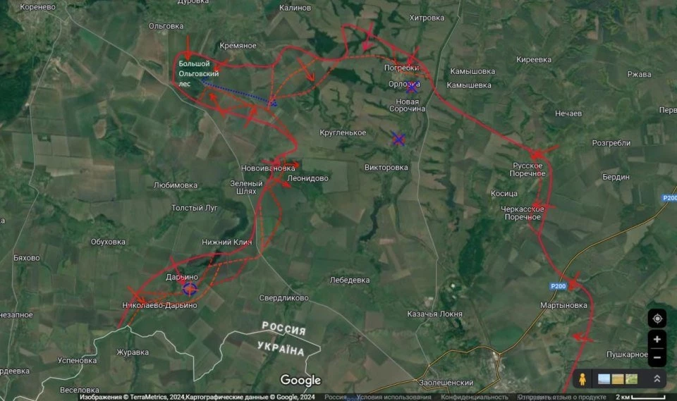 Южнее Суджи, пытаемся переправиться через Псёл и занять холмы на его западном берегу. Пока очень тяжело здесь, несмотря что в этих попытках мы зашли на территорию Сумской области и продвигаемся по направлению к Александрии.
