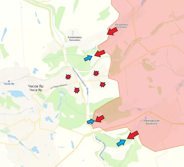 В рамках продолжающегося наступления, российские войска добились значительного прогресса в районе Часов Яра. Согласно последним сообщениям с фронта, штурмовые группы ВС РФ смогли пробиться к каналу "Северский Донец-Донбасс", который находится всего в двух километрах от города.
