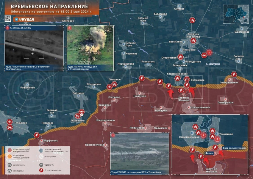 Последние новости СВО на 3 мая 2024. Карта боевых действий на Украине на сегодня, военная сводка