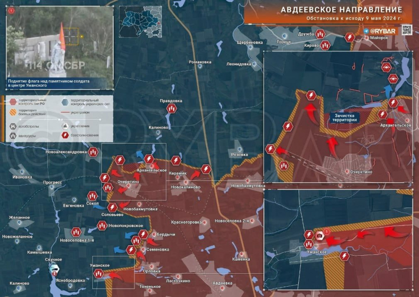 Новая карта боевых действий под Авдеевкой на сегодня, 10.05.2024