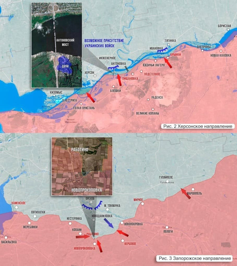 На Херсонском направлении по некоторым данным, украинские формирования покинули Крынки. На Херсонском фронте враг признал потерю Крынок, но ВСУ совершают вылазки с островов.