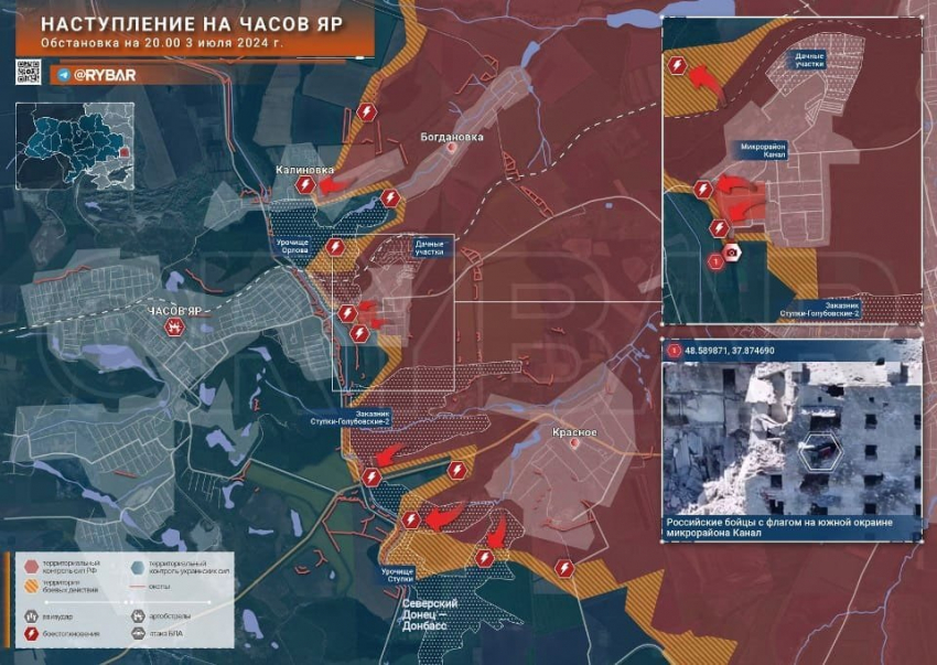 На Артёмовском направлении российские войска полностью зачистили микрорайон канал в восточной части Часов Яра.