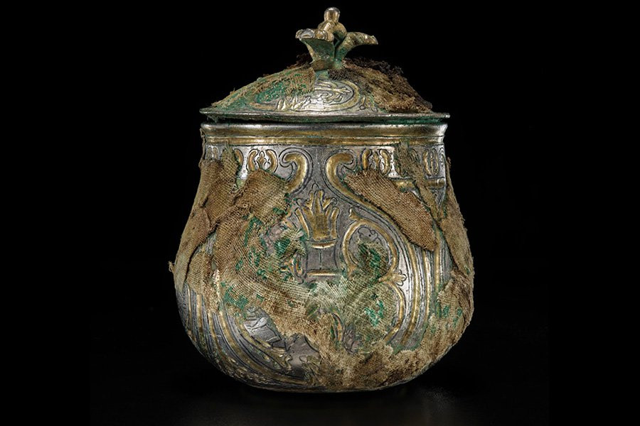 Исключительный серебряный сосуд с крышкой из клада викингов, обнаруженного в Дамфрисе и Галлоуэе, Шотландия, который изначально считался каролингским, на самом деле был создан в Персии во времена Сасанидской империи (224-651 гг. н. э.). Тщательная очистка и металлургический анализ показали, что горшок проделал путь в тысячи километров, чтобы в какой-то момент истории оказаться набитым добычей викингов и захороненным на юге Шотландии.