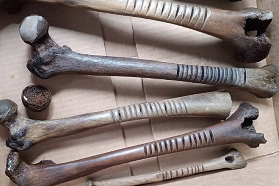 Археологи также обнаружили на обнаженном дне озера многочисленные человеческие кости, в основном бедренные кости. Эти удивительно хорошо сохранившиеся кости имеют замысловатую резьбу и бороздки, что указывает на ритуальное или культурное значение.