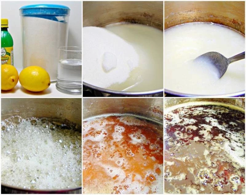 Процесс приготовления такой пасты начинается с того, что сахар необходимо высыпать в кастрюлю с эмалированным покрытием и залить водой. Поставьте кастрюлю на водяную баню и дождитесь, пока сахар полностью растворится. Как только это произойдёт, добавьте лимонную кислоту и тщательно перемешайте смесь. Варите пасту на водяной бане до тех пор, пока она не начнёт приобретать белый оттенок. После этого снизьте огонь и варите пасту ещё 10 минут, продолжая помешивать.