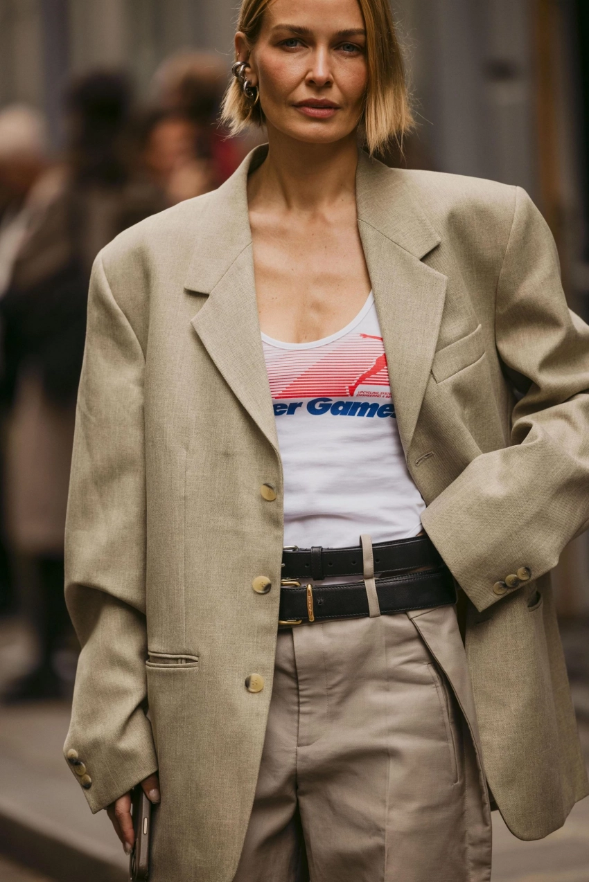 Жакет — вещь, которая сочетается практически со всем: от джинсов до платьев и строгих брюк. Особое внимание стоит уделить посадке и плотности ткани. Универсальным выбором будет жакет в стиле оверсайз, который позволяет комбинировать его с объемными свитерами и футболками. Важно, чтобы материал держал форму и выглядел дорого.