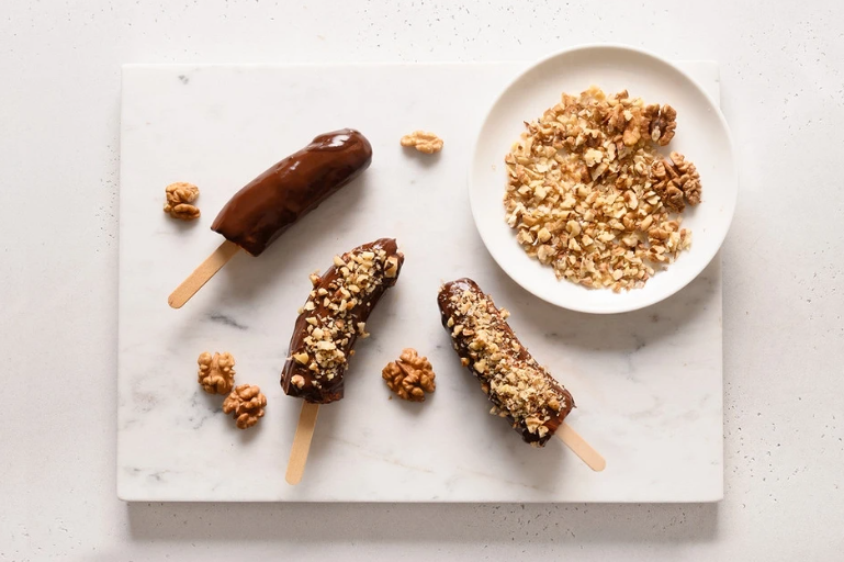После замораживания бананы готовы к подаче. Наслаждайтесь этим легким, но насыщенным вкусом, который утоляет сладкий зуб и при этом остается полезным и освежающим.